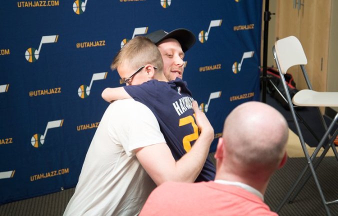 Joe Ingles said: “He’s (Landon) just a regular kid, and wants to play like the rest of the kids and sit in the back of class — to be able to give an opportunity to do that was just something I couldn’t not do. To be able to walk down the street and look at the trees or see his friends, it means a lot. It was awesome to see him and his dad. Pretty special.”