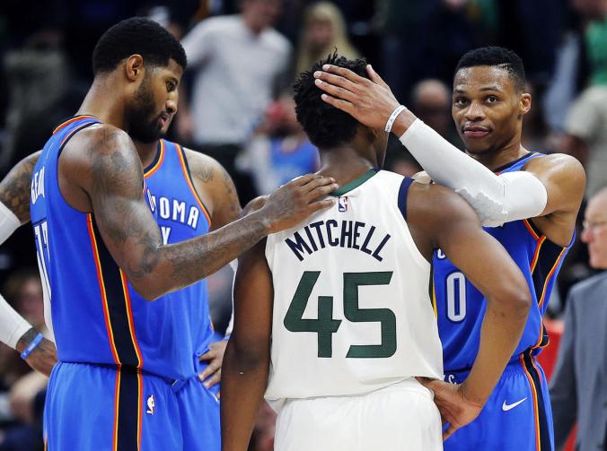 Mitchell did look lost in the playoff-like moment against Portland during the season’s finale. He shot 6/23 and only made one of his eight deep bomb attempts. And yes, he’ll be the focus of the Thunder’s defensive game plan and will be hounded by Paul George for most of the series.