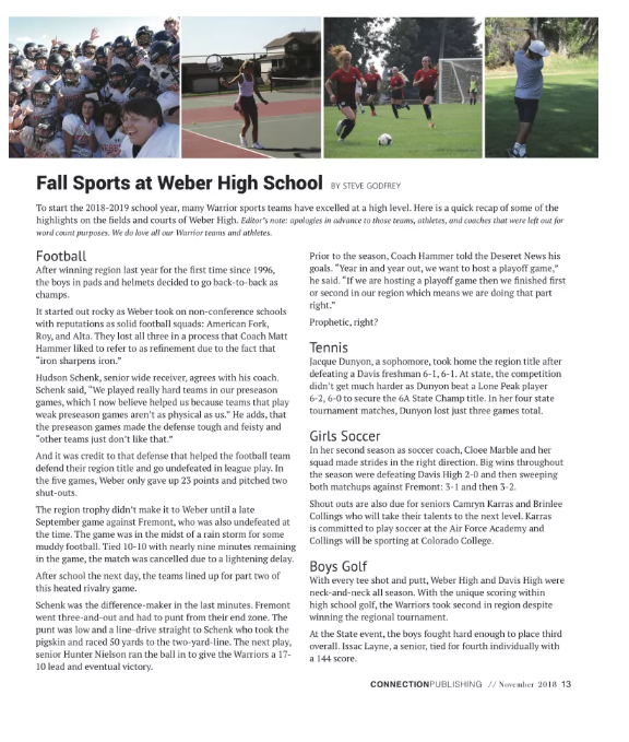 Fall Sports at Weber High School November 1, 2018February 28, 2021 / sgodfrey630 Found Here. Like it? Share it! Click to share on X (Opens in new window) X Click to share on Facebook (Opens in new window) Facebook More Click to email a link to a friend (Opens in new window) Email Click to share on Reddit (Opens in new window) Reddit Like Loading... Related