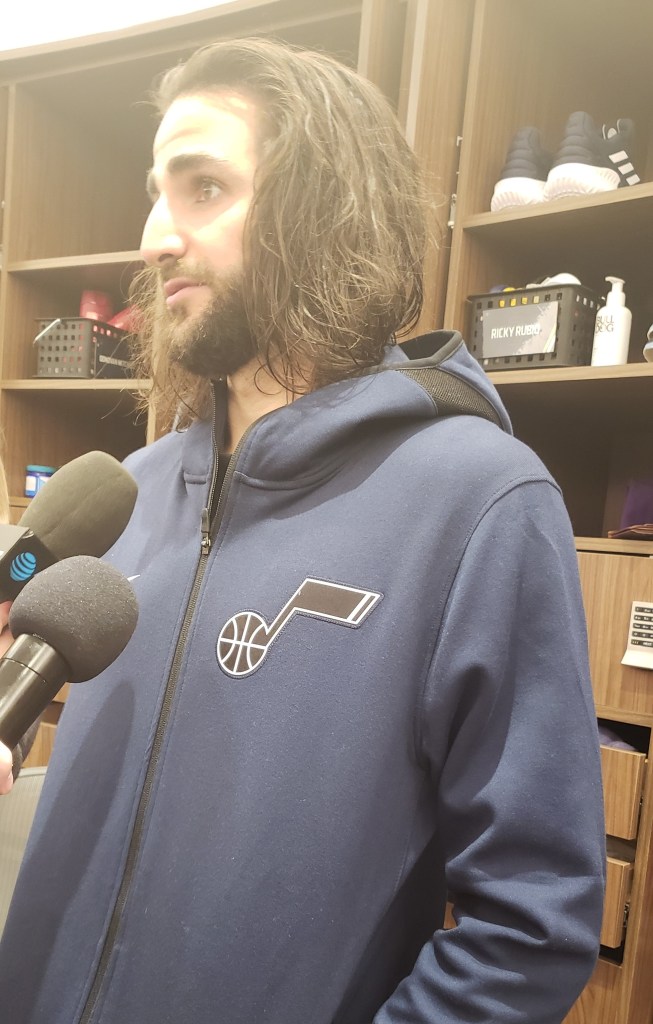 Last up for me was Derrick Favors, wearing a Paper Root, purple Prince shirt. He was asked about Gordon Hayward, too, and joked that the arena “could be empty” but that “it was going to just be another game for us.” And then the locker room began to filter out. Ingles never passed through, which was a bummer, but I was up close with so many of these guys and in the weirdest environment given they were in and out of showers and changing (I saw a lot of skin).