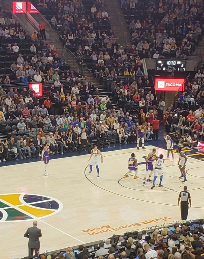 I sat on media row, surrounded by reporters from ESPN, the AP, the Athletic, and Spanish-broadcasters, too. As the game tipped off, I cheered and exclaimed approval at plays but needed to be reminded I was to stay objective and neutral (oops). The game was a route in the Jazz’s favor, a 117-102 win including two highlight-reel dunks by DM45, and sitting amongst my idols as peers was just awesome.
