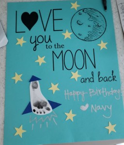 Kai’s birthday was Tuesday and we took him to visit Navy for the first time. Their little first union was so sweet, and magical of course. He poked her toes, counted her fingers (then his, then hers, then his one more time), held her fist so tight, read to her, told her stories, sang to her, played with her cords, and looked adoringly at her (when he wasn’t distracted by spinning in the fun chairs). We told some people about bringing Kai in on his birthday and consequently everyone spoiled the three-year-old. He got presents from everyone; my favorite was a card with Navy’s foot as a rocketship from the Child Life Specialist team. I have Dad dreams of Navy recreating that card every year from now on for Kai’s birthday.
