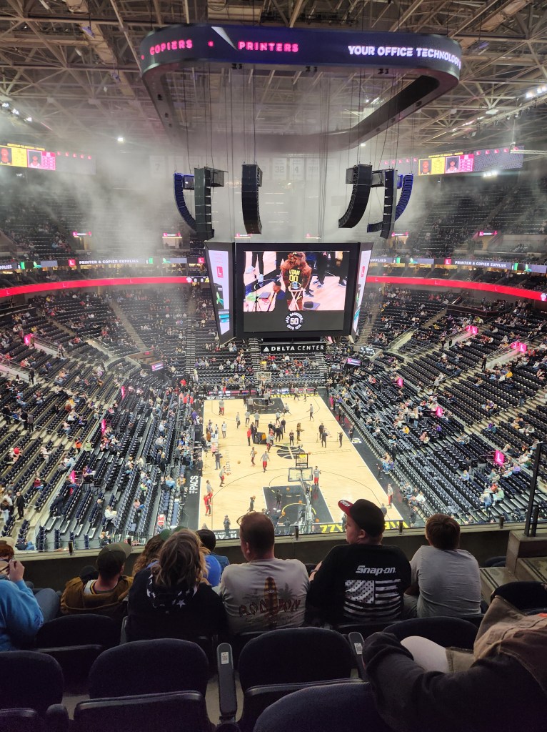 We had Culvers for dinner, sitting at a tall booth and talking about dragons in the books he had been reading lately. After parking for $20 to support West High School’s Latino’s In Action club, we walked to the Delta Center hand-in-hand while I told him the plot of The Marvels, the latest Marvel movie his mom and I had been watching in increments.