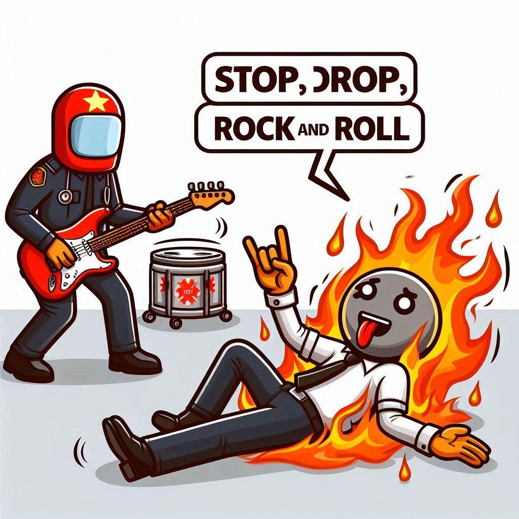 She paused. She thought. Then the answer came to mind and she lit up. Full of confidence, and a you-should-be-proud-of-me smile, she replied, “Stop, drop, and rock and roll.”
